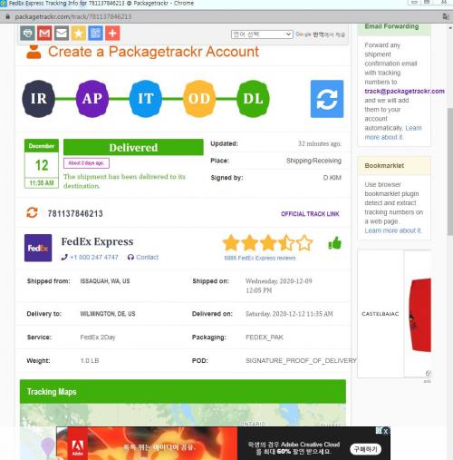 저는 8더즌 9.9파운드로 나옵니다. 현재 델라웨어 페덱스 사무실까지 왔다고 하는거보니 낼쯤 배대지 입고될까 싶습니다. | ||