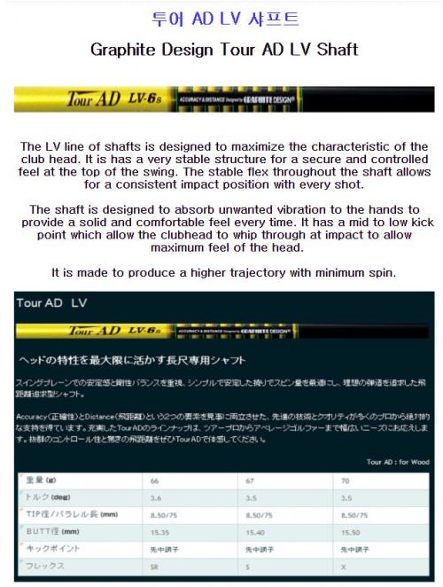 붙임1 사진은 제 서브채 샤프트인 투어AD LV-6S 스펙입니다. 이참에 좀 찾아봤네요^^; 흔한게 아녀서^^;