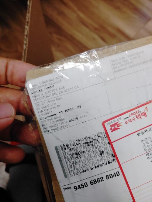 배대지에서 를 받았습니다. 합배송이였고 신발두개(이베이) + SSD(아마존)