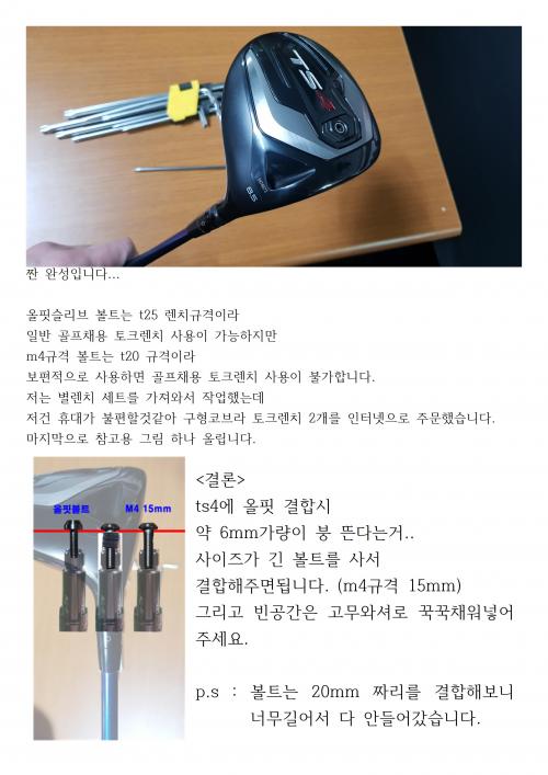 혹시 스릭슨 드라이버 올핏 결합하는법좀 알려주시면 감사하겠습니다. | ||