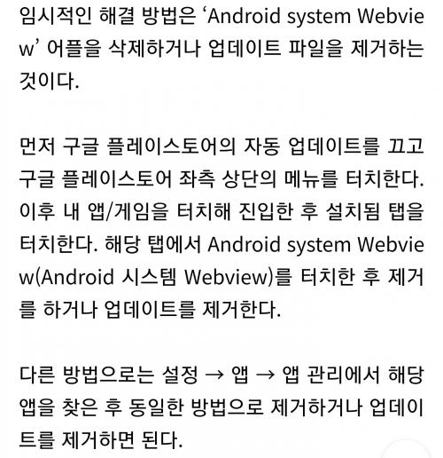 설정-어플리케이션-android webview-우측상단 업데이트삭제 하면 정상작동합니다~~