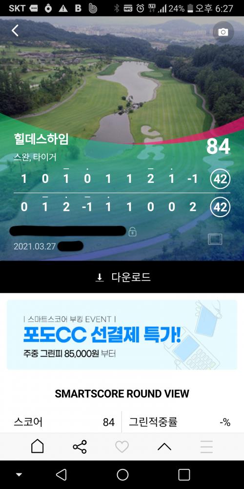 벙커 들어가고 헤메고 그래서 그 홀 스코어가 안좋았음