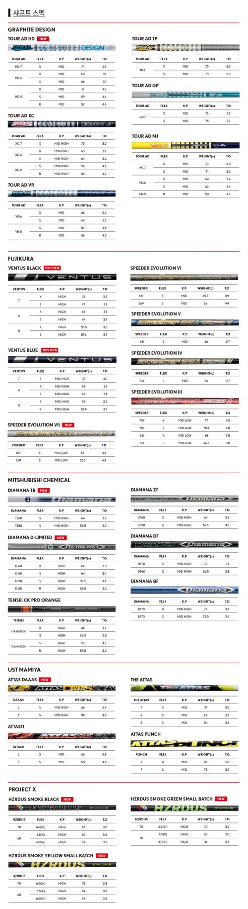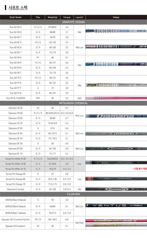 선배님들 샤프트 스펙 확인해보기 편하시라고 올려봅니다.
