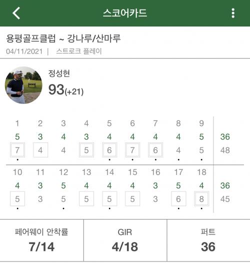 당연한 수순으로 18홀 양파하고 93타로 마무리 지었습니다 ㅎㅎ