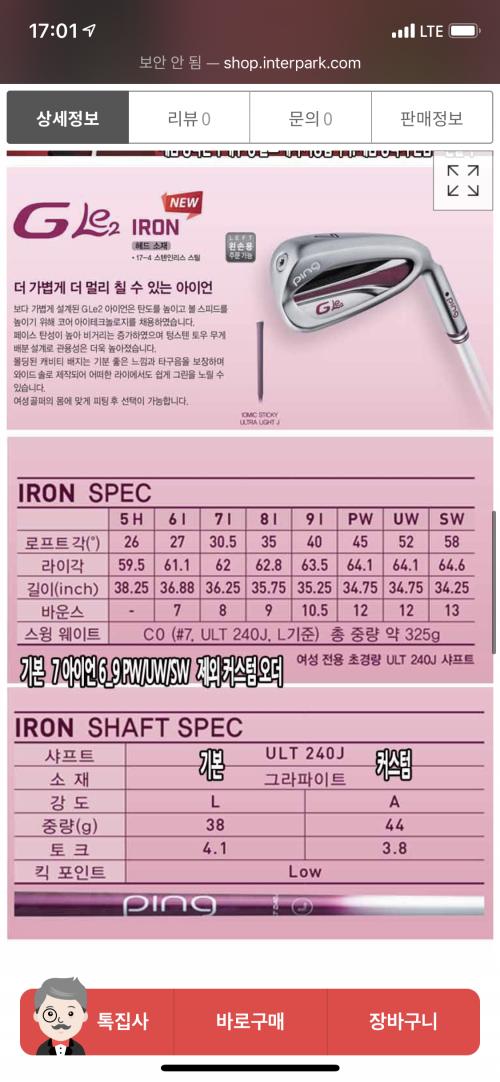 혹시나 직구하시는거라면 샤프트길이 줄이셔야할텐데 그러면 강성도 올라가서 더 딱딱해질겁니다. 보통 마이너스1/2하는것 같았습니다. 그립은 언더사이즈하시구요. 주변에 직구하신 분들은 리샤프팅하시던데 그렇게되면 카네정품이랑 비슷하오니 그냥 시타해보시고 정품 구매 추천드립니다. | ||