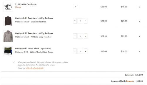 250불 이상 50불 할인이요. 관세내(200불)에 들어오려면 정확히 250불 맞춰야 해요 | ||