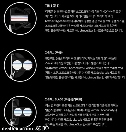 공이 왼쪽으로 빠진다면, 스트로크가 직선이실 경우 페이스밸런스 (더블밴드) 넥을 추천 드립니다. 그립 차이만 가지고도 평가한 결과가 있어서 공유드려요.
