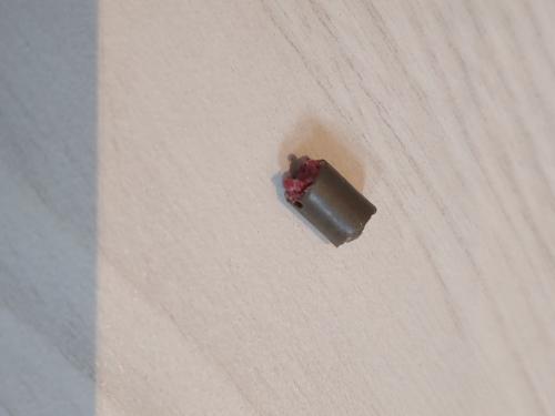 에폭시 찌꺼기입니다..슬리브 고정시 쓰이는 에폭시가 샤프트 끝에서 굳어지는데 그 일부가 떨어진 겁니다.