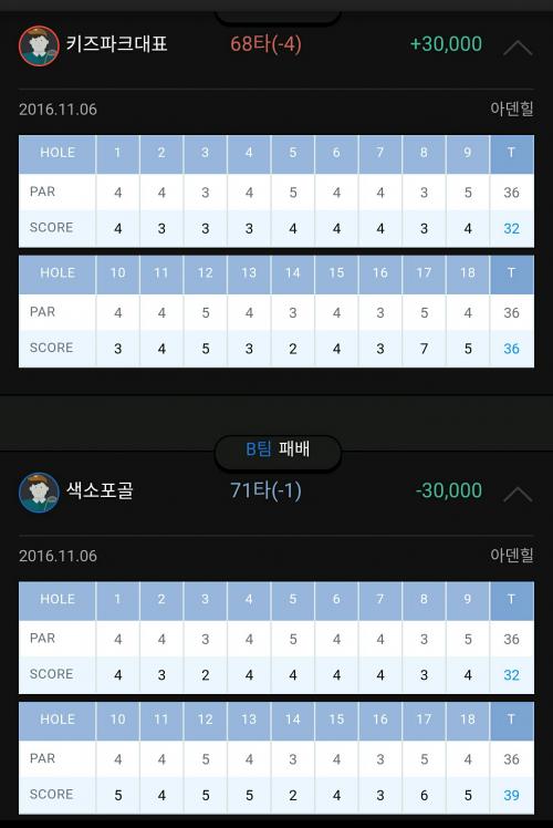 14번홀부터 또 비기길래 18홀서 크게 먹으려고 17홀 보기 맞추다가 2미터펏 실패로 더블 나서 지고...ㅋㅋ