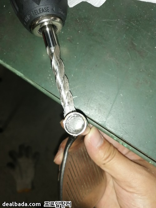 기존의 무게추를 모두 제거하고, 헤드만의 무게중심이 크게 이동하지 않는 범위에서 호젤 보텀을 깍아서
