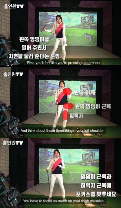 자칫하면 엉덩이가 뒤로 빠져서 이상한 모양의 스윙이 될 수 있지요 오른발로 중심으로 스윙하는 모습. 신동엽이 그런 모습의 스윙이더라구요 | ||