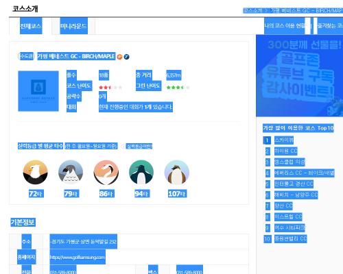 우리나라에 있는 골프코스 전장 정보가 딱 모여 있으면 좋겠지만 그런곳은 딱히 없는 것 같아서 어떻게 데이터를 수집할까 하다가 떠오른게 골프존 홈페이지 코스정보였습니다.