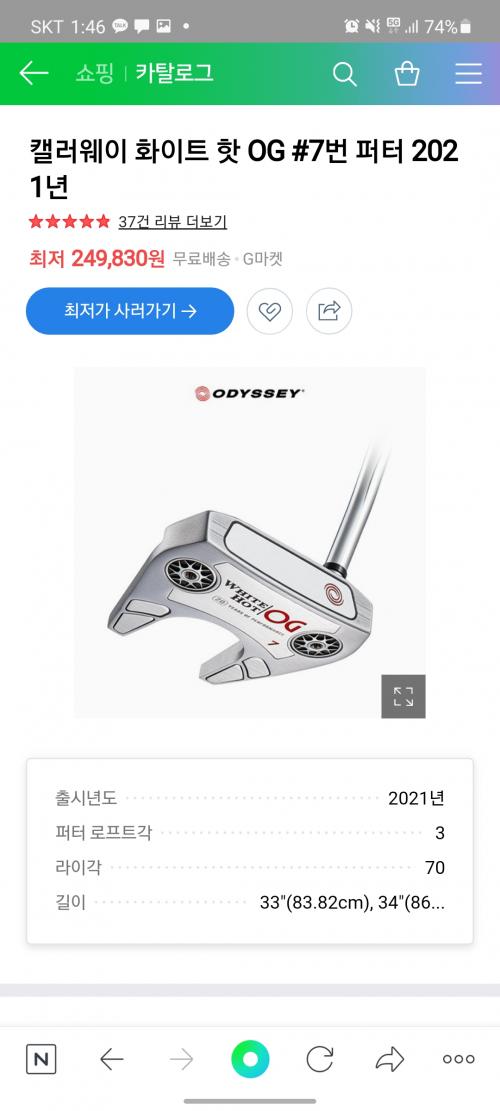 캘러웨이 7번 퍼터가 유명하고 좋은 퍼터는 맞는데 지금 잘 쓰고 계신데 기변을 꼭 할 필요가 있나 싶어요. 만약 바꾸신다고 하면 캘프에서 세일할때 사시는것도 괜찮습니다. | ||