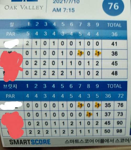 오크힐스 전장은 짧아도 어려운 곳입니다. 싱글 축하드려요~! | ||