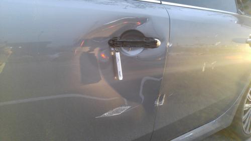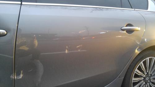 운전석 도어 끝부분(뒷 도어와 만나는 쪽)부터 뒷 도어 + 휀다까지 쭈우욱 긁혔네요.