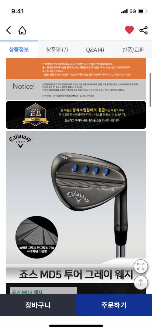 새로 장만한 52도 맥대디5 죠스 웨지인데 그루브 인 그루브가 사선으로 되어 있습니다.