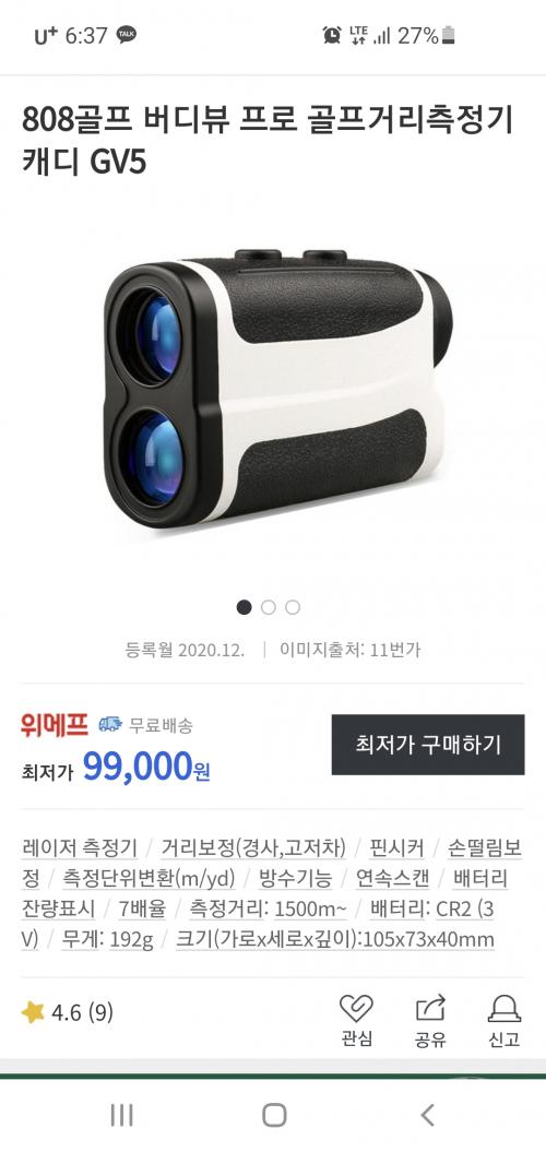 제가 거리측정기 열심히 알아보다 시계형 레이져형 어느것이스타일에 맞을까 알아볼겸 싼마이로 808구매해서