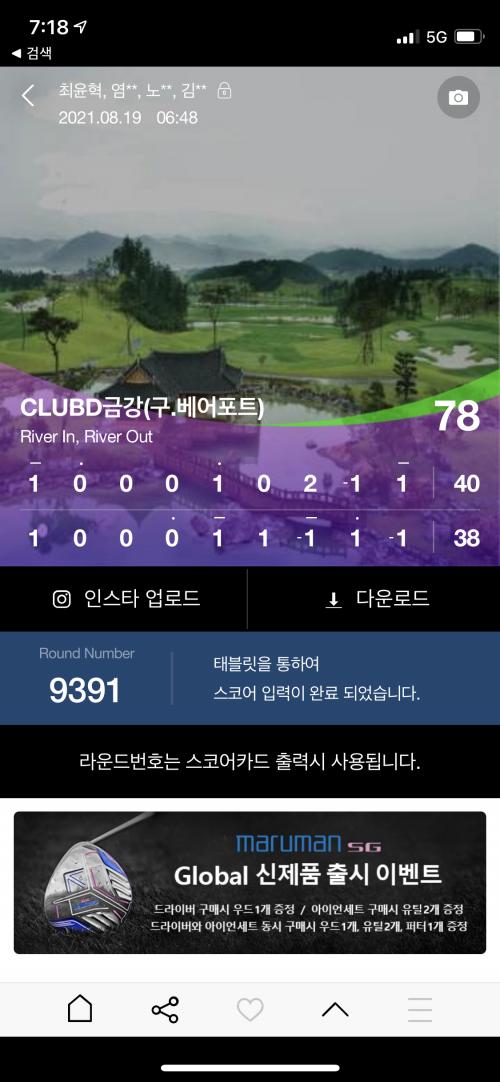 중고클럽 아이언헤드 상태 맘에들어서 들였는데 받아보니 2미터정도 되시는 미국형님이 치셨는지 7번이 38.5인치 정도 길이되고 패럴도 조립상태가엉성해서 클럽앞뒤로 손보고 연습장시타후 바로출격했습니다