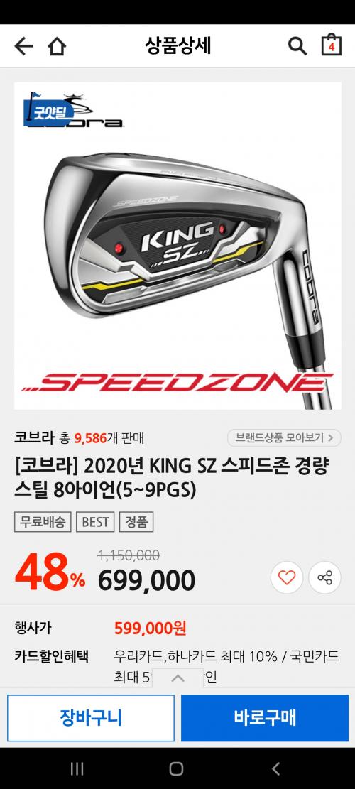 8개 아이언이라 처음 새아이언 세트 구매하는 분에겐 실속 크겠습니다. 10% 할인에 배송료 무료이니 클럽당 75,000원 밖엔 안되는군요. | ||