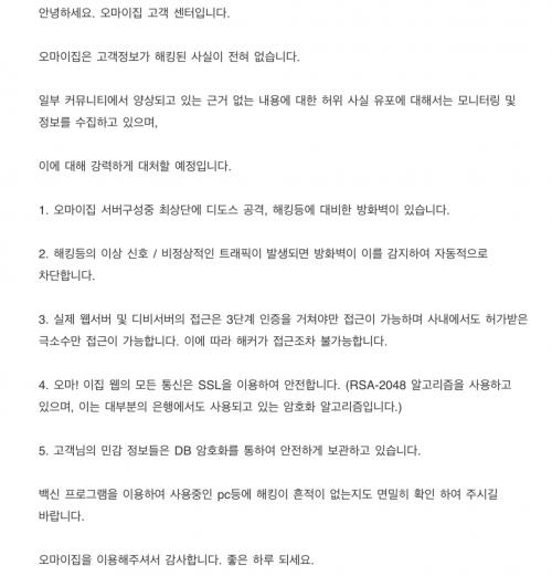 다름이 아니라 최근 이슈가 되고 있는 카드정보 유출 의혹과 관련하여 내집 담당자에게 문의하여 아래와 같이 답변을 받았습니다.
