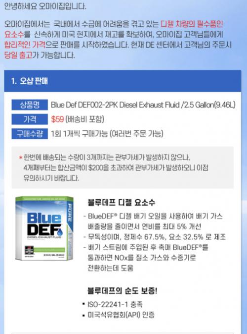오마이집 오샵에서 9.25L를 배송비 포함 $59불에 판매하고 있네요. 리터당 7600원 정도 됩니다.