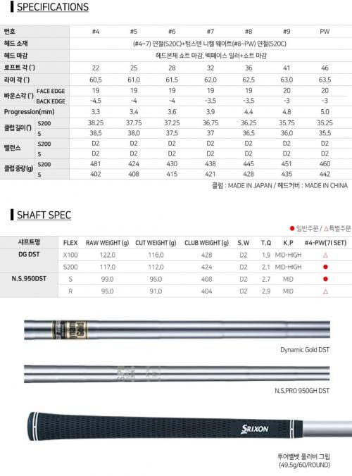 1. 스릭슨 ZX7 아이언 표