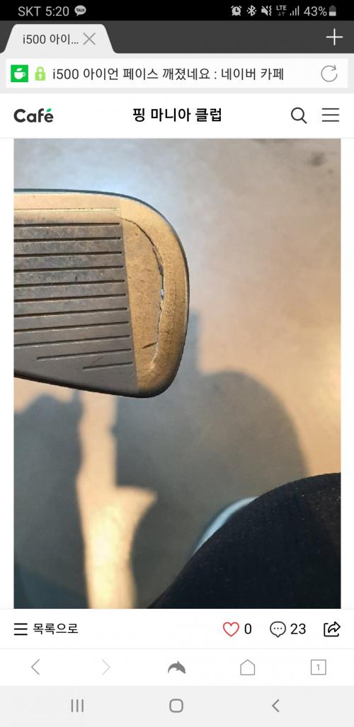 우와... 아이언 페이스면 깨진건 처음 봅니다. 아무리 세게 친들 골프공만 때려서는 안깨질거 같은데....