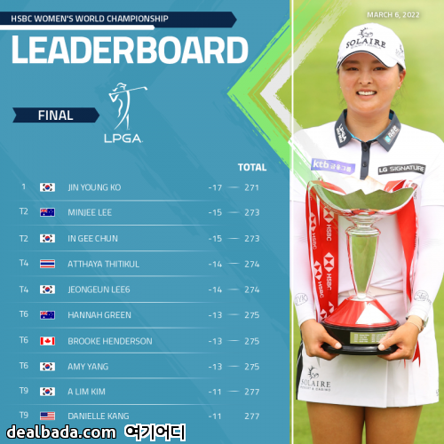 탑텐에 한국선수가 무려 5명에 이민지, 다니엘 강까지 하면 그냥 뭐 klpga라고 해도 이상하지 않을