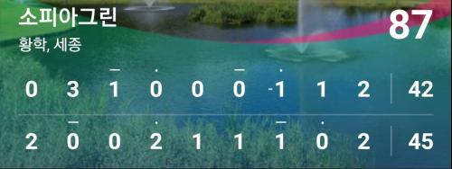 18홀은 최종 스코어 느낌 보고 힘 확 들어가더라고요 ㅎㅎ 페어웨이에서 두 번 절고 들어가서 더블했어요.