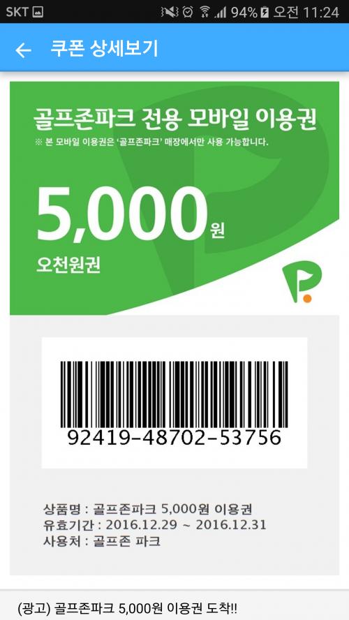 제가 두번째거 사용하려고 했는데 제가 갈 수 있는 골프존파크는 이미 예약이 꽉차서 안되겠네요 breadcuxjw님께는 감사드리고 다음분에게 드리겠습니다. 감사합니다. | ||
