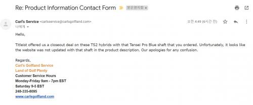구매 링크에 Stock Shaft 언급된건 통상적으로 판매하는 거고 이번 판매 딜은 텐세이 프로 블루로 주는건가?! 하고 살짝 행복회로를 돌려보다가 잠들었는데... 일어나서 보니 답장이 와 있네요.