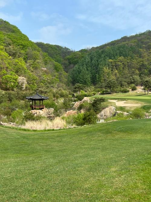 강원도이지만 양잔디라서 그런지 이미 많이 올라와있었고, 유명한 시그니처 홀들(논두렁 파5, 정자 파3) 구경에 시간가는 줄 모르고 플레이하고 왔습니다.