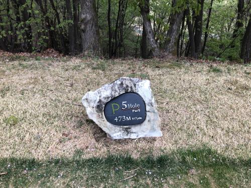 밸리5번홀 파5홀입니다. 2홀 연속 큰 훅이 납니다. 운좋게 왼편 바위에 맞아 공이 튀어 나옵니다. 세컨 지점에서 그린이 보이지 않아서 7번 아이언으로 끊어갑니다.