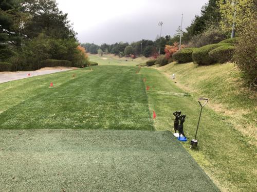 스타팅 광장도 좀 좁습니다. 연습 그린에서 퍼팅연습을 조금 했는데 그린이 빠르진 않네요. 원래 3.0 가깝게 세팅한다고 하는데 오늘은 2.6 정도로 그냥 보통 스피드였습니다.