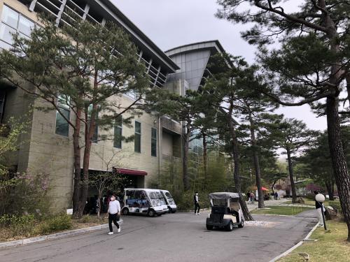 골프장에 도착하여 골프가방을 내리고 주차를 하는데 골프장 주차장이 매우 좁습니다. 2003년에 개장했다고 하는데 왜 이렇게 주차장을 좁게 만들었는지 좀 의아했고요. 길가에 세워둔 차들이 너무 많아서 좀 신기했습니다. 클럽하우스도 타 골프장 대비 작은 편이었습니다.
