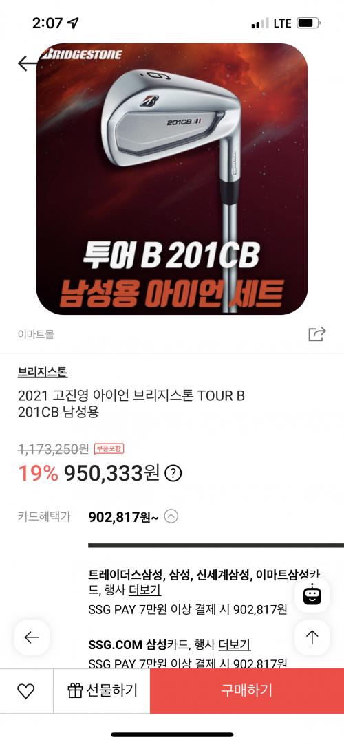 브리지스톤2021 고진영 아이언 브리지스톤 TOUR B 201CB 남성용 905510원 - G9모바일
