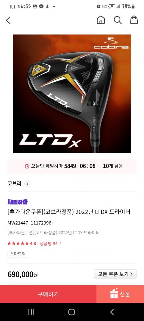 코브라 ltdx 진짜 명기 될 겁니다. 슬라이스 훅이 없어졌어요 . 직진 성이 정말 좋습니다. 그래서 푸쉬는 조심 ㅋ | ||