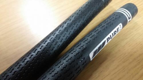 샤프트에 장착하기전에 잡아보면 퓨어가 아주 살짝 더 굵게 느껴지는데 장착시 늘어나는 부분도 있기에