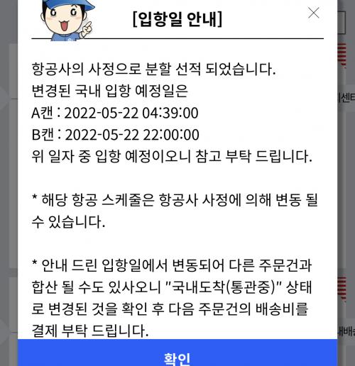 오프로드 상황이네요..2번에 다른 항공기로 나눠 들어오는 상황으로 통관상에는 하기 신고로 뜰겁니다.