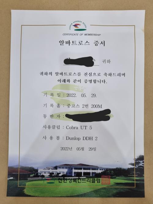 축하드립니다! 저는 버디도 잘 못해봐서 알바트로스는 어떨지 상상조차 안됩니다. ㅎㅎㅎ | ||