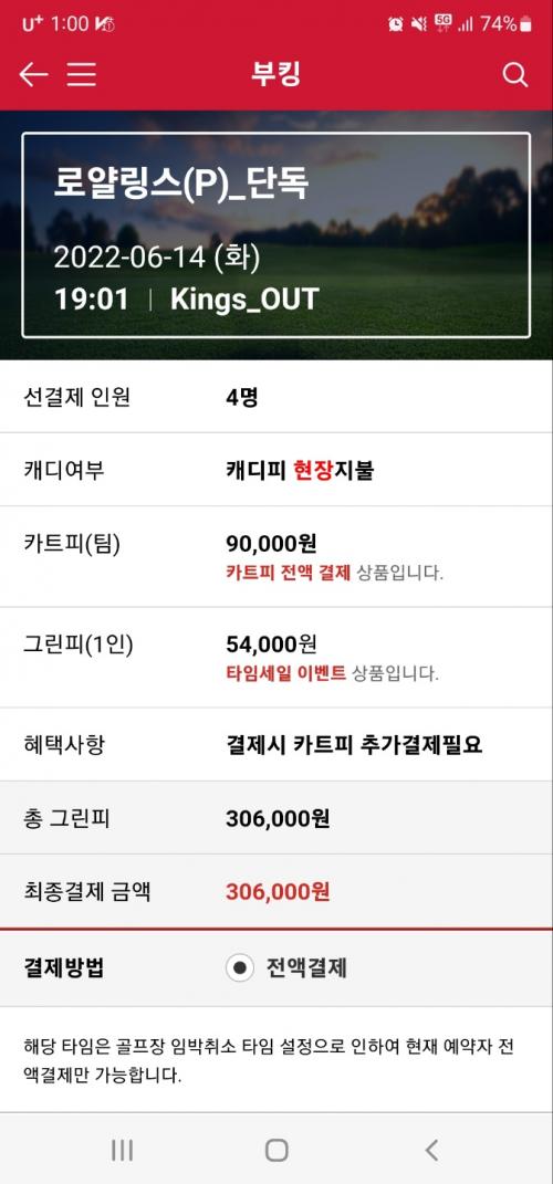 로얄링스 6/14 19:01 티스캐너 초특가 풀양도 합니다