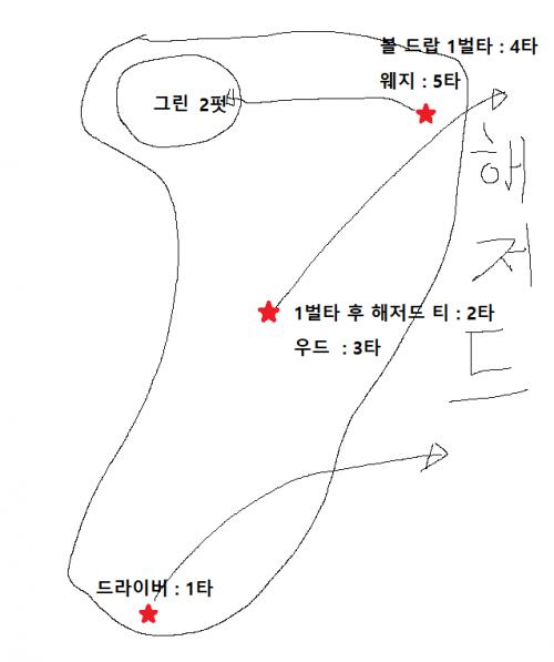 계산 쉬워요. OB든 해저드든 모든 스윙횟수(나간샷포함) +1인데,