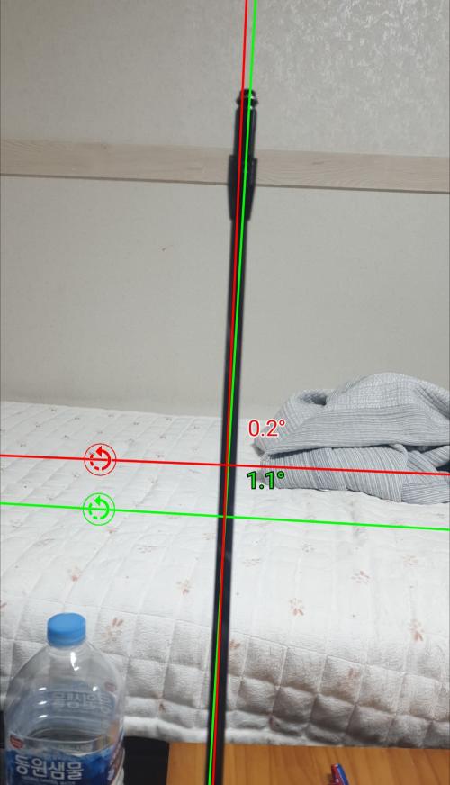 받자마자 뭔가이상해서 어플써서 수직도봤더니...