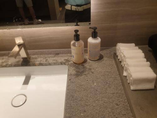 화장실 세면대도 손닦는 수건이 한장한장 개어져 놓여있습니다.