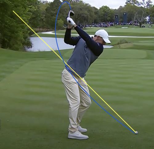 원플레인 스윙이라고 해도 노란 선 그대로 따라다니는 건 swing width를 작게 만들고 가동범위까지 줄이는 나쁜 스윙입니다. 노란 선보다 위에서 노는 게 맞다고 고정관념을 탈피할 필요가 있어요. | ||