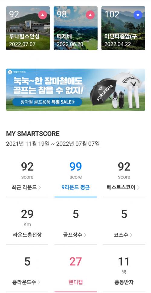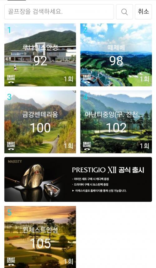 처음 머리올린날 105개를 시작으로 지금까지 필드 9회 다녀왔는데 기록남은 7회 스코어 올려봅니다.