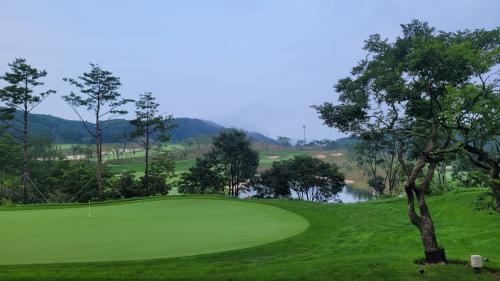 페어웨이, 러프는 물기를 많이 먹어서 그런지 단단하지 않고 좀 축축했어요 예전엔 티샷치고 한없이 굴러서 빠지기도 하고 그린주변에서 굴려서 그린에 올리고 했던거 생각함 재미가 덜하네요
