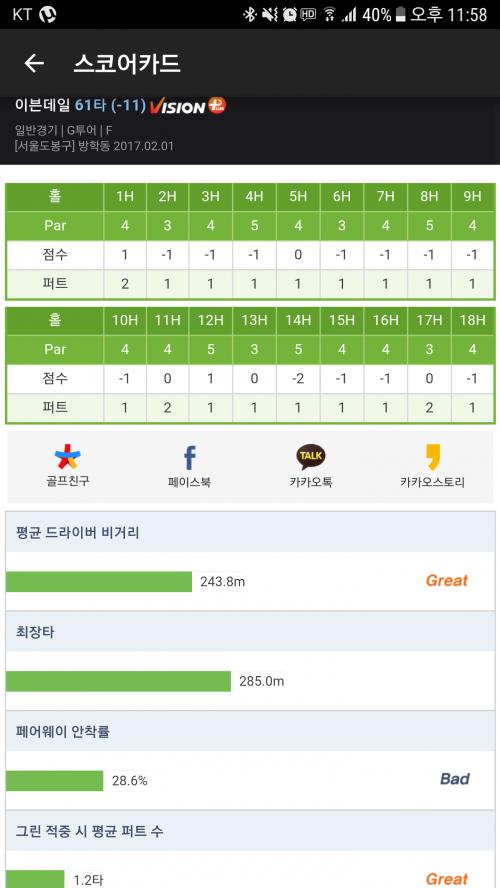다시 봐도 어마무시한 스코어네요. 축하드립니다!! EPIC 쓰시면 13언더 거뜬해유! | ||