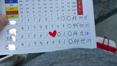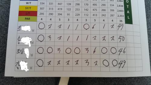 파 8개 버디 1개 하고 저 스코어라니 ㅋㅋ 진짜 웃프긴합니다~~~ | ||