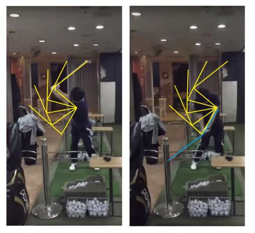 케비니 님은 오른 다리에서 벌써 클럽이 다 퍼져 있죠? (파란색선)